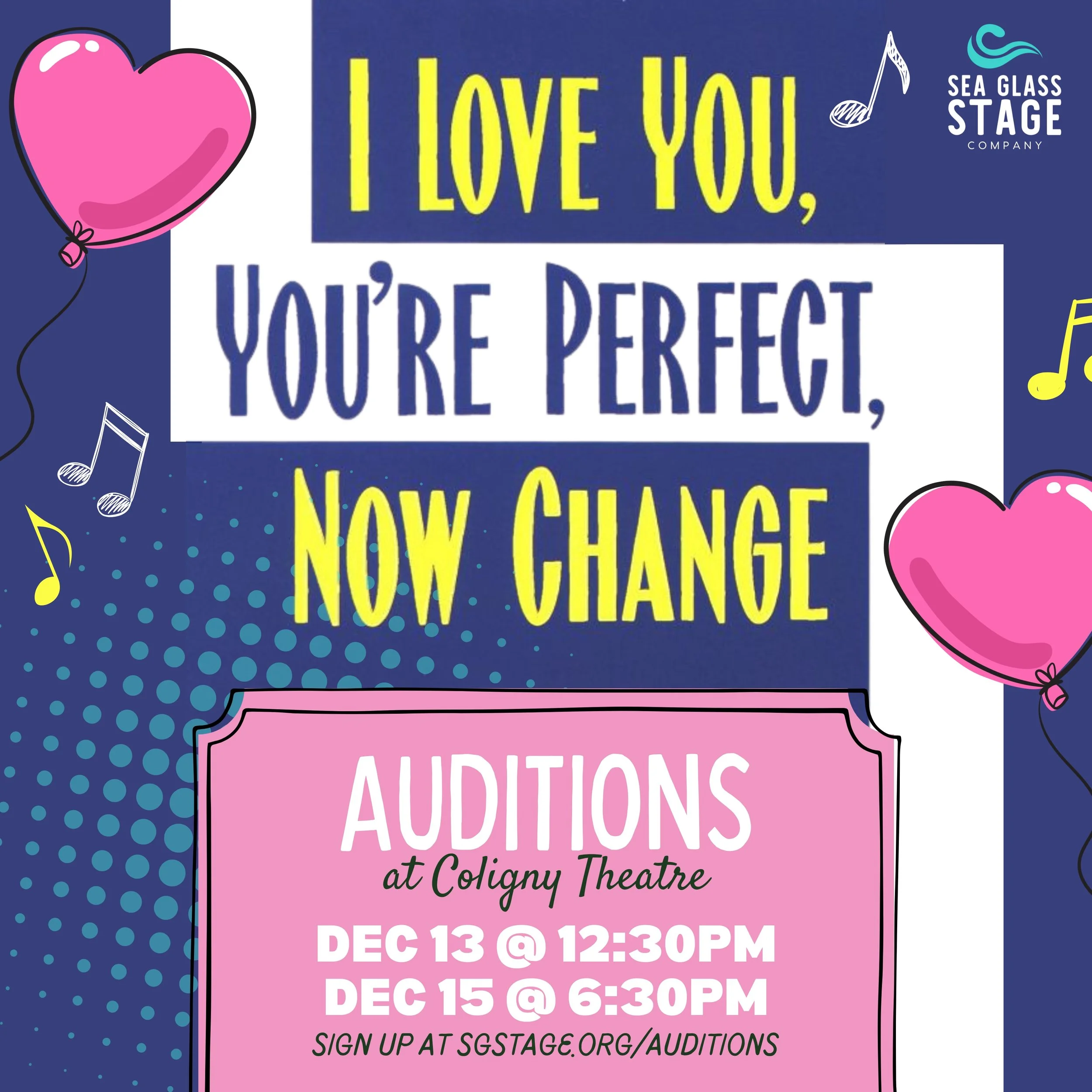 Sea Glass Stage Company is seeking talented, versatile performers for our 2026 season production of I Love You, You’re Perfect, Now Change—a fast-paced, heartfelt, and hilarious musical revue exploring modern love in all its stages.